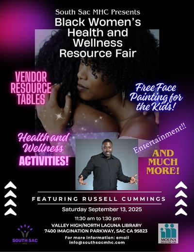 Black Women's Health and Wellness Resource Fair on Saturday September 13, 2025 from 11:30am to 1:30 pm at the Valley Hi/North Laguna Library 7400 Imagination Pkwy, Sacramento,CA 95823. Here is the link to register: